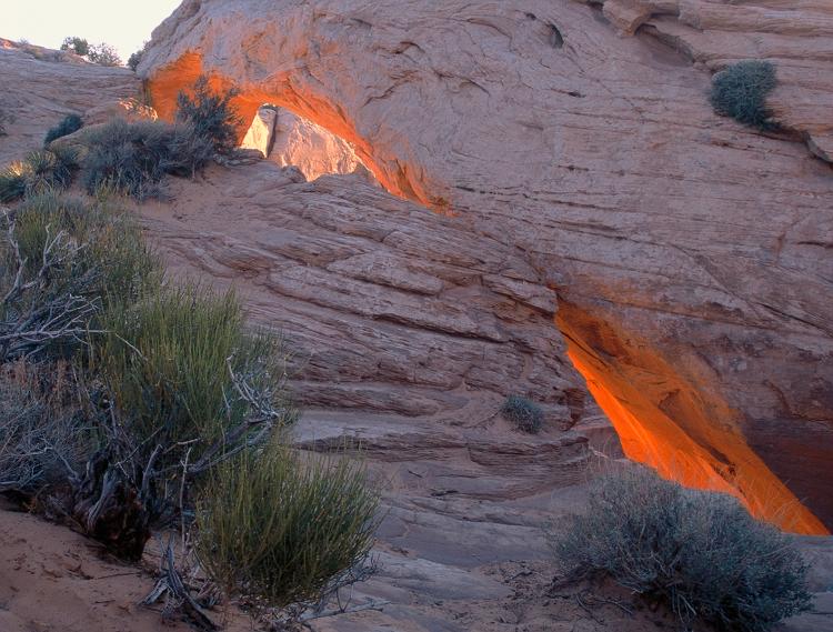 Early morning light illuminates the underside of Mesa Arch