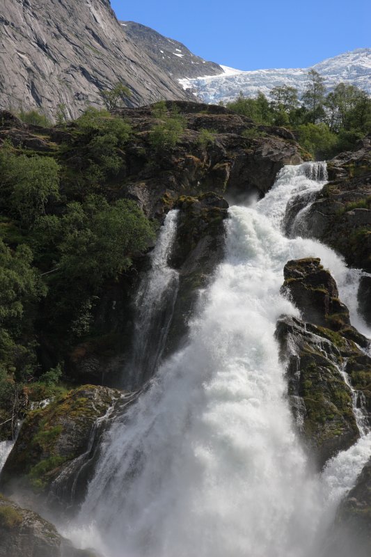 Waterfall on the outlet stream below the Briksdalsbreen. A cliched photo