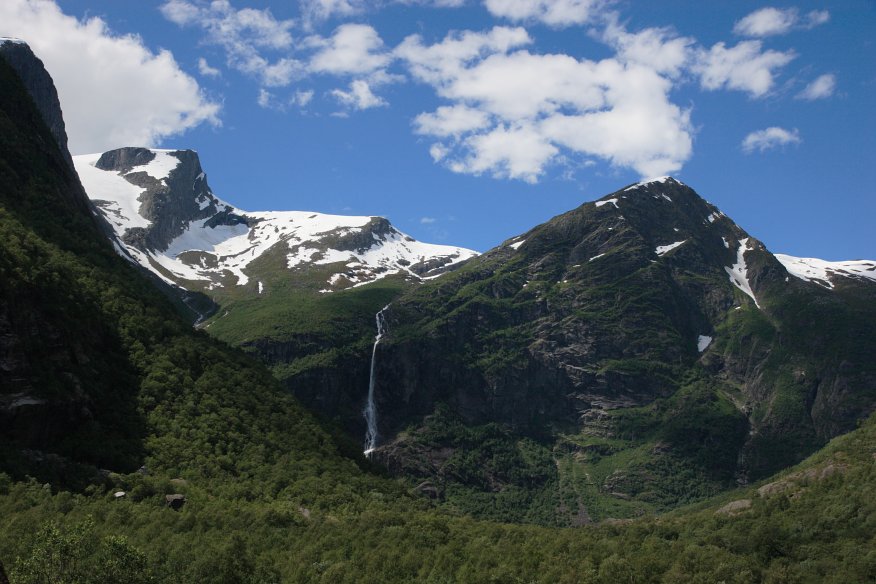 Storevatnet ascends the cliffs to the left of the waterfall visible across the valley.