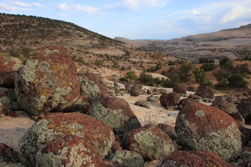 Volcanic boulders along the slickrock trail to Upper Calf Creek Falls