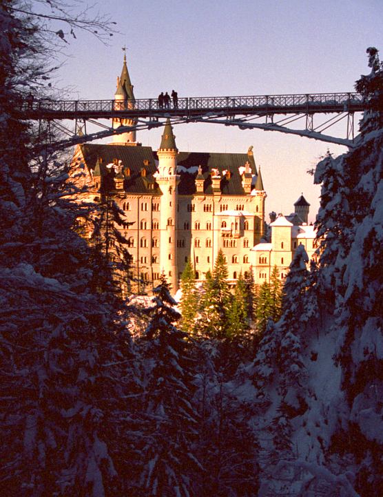 Neuschwanstein Castle at sunset, near Fussen in Bavaria