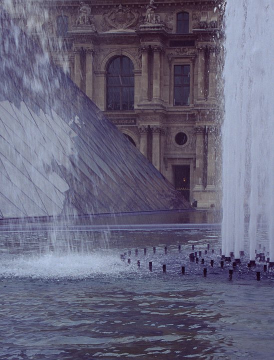The old galleries of the Louvre behind the pyramid, Paris