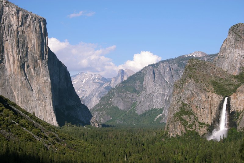 El Capitan and Bridalveil Falls frame Half Dome and Clouds Rest,
